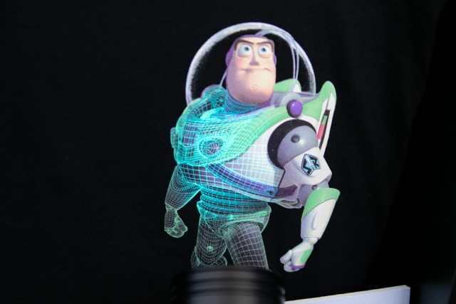 ピクサーのCGが生まれる過程を展示する企画展らしく、モデリングの網目が透けるようなデザインが特徴です。