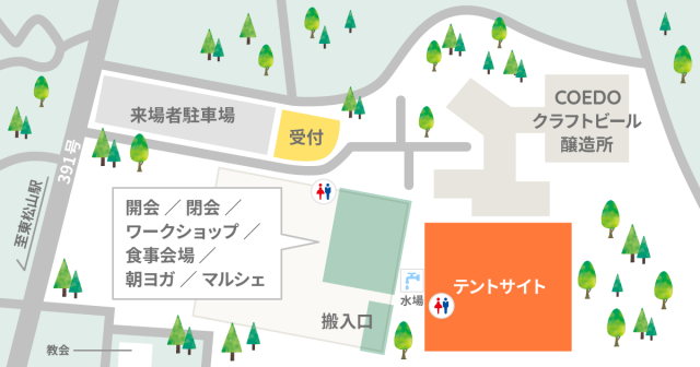 ・テントサイト:COEDOクラフトビール醸造所敷地内グランド