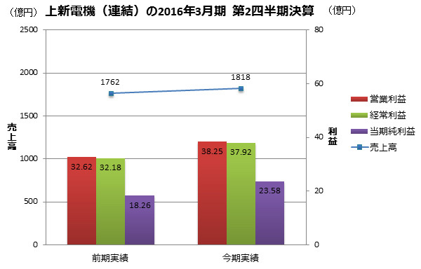 上新電機が11月9日に発表した2016年3月期の中間連結決算は、猛暑によるエアコンが好調だったのに加え、テレビやIHジャー炊飯器を中心に高機能商品の買い替えが進んだ影響で、増収増益だった。