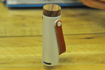 本体にはボタンがなく、シンプルな筒状のアルミボディ。底面にBTスピーカーを内蔵し、上部のコルクを回すと充電するためのMicro USB端子と電源ボタンがせり出てくる。身に着けていても、あるいは出張先のホテルに置いても、パワフルな目覚まし時計を感じさせない洗練されたデザインに仕上がっている。