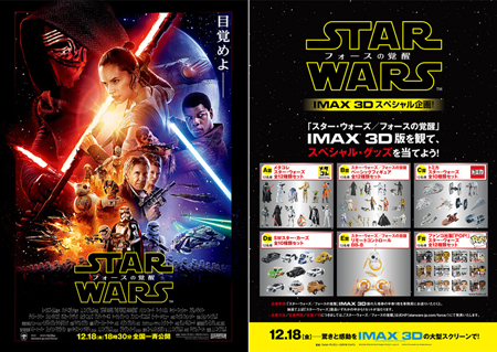 日本のIMAX担当者は「映画館としてIMAXシアターが日本に誕生してから19年。ついにIMAXのシアターで必ず体感するべき作品が誕生します。映画を超えたエンタテインメント『スター・ウォーズ/フォースの覚醒』です。この作品ではIMAXカメラも使用されている事が明らかになっていますが、こんなにも公開が楽しみな作品は初めてです! 弊社一同興奮しております!本作はIMAX3Dで映画を超えた最高の体験ができることをお約束致します」とコメント。この冬はIMAXの劇場に多くのファンが足を運ぶことになりそうだ。