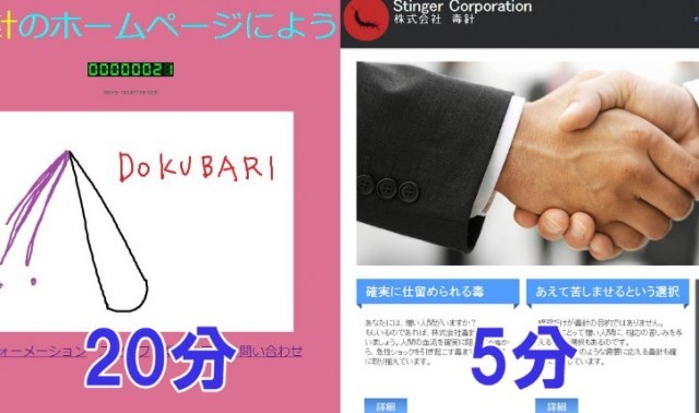 ところで、例のホームページの作成時間は、左が20分、右が5分です。