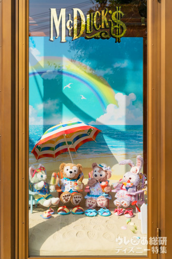 正面エントランスの左手のウィンドウには、「ダッフィーのサニーファン」のメインアートと同じ4人がいます。