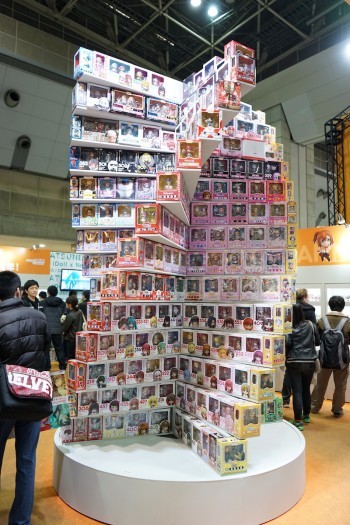 ブースの中央にには2月に開催された「ワンダーフェスティバル」で披露された「ねんどろいど」パッケージをトルネード状に積み上げた回転式オブジェのほか、たくさんの「ねんどろいど」が並べられ、会場を訪れたアニメファンたちが好きなキャラを探しなどして楽しんでいました。