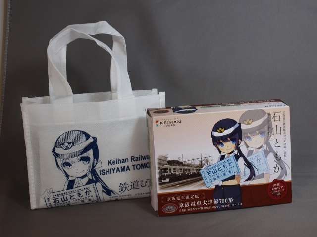 パッケージに鉄道むすめ・石山ともかがデザインされた京阪電車限定版が販売され、特典としてオリジナルパッケージがちょうど入るサイズの石山ともか特製ミニトートバッグが付属します。