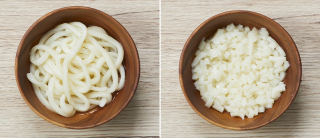 スリットを合わせて十字に組み立てると、麺類や野菜を一気に刻むことができます。