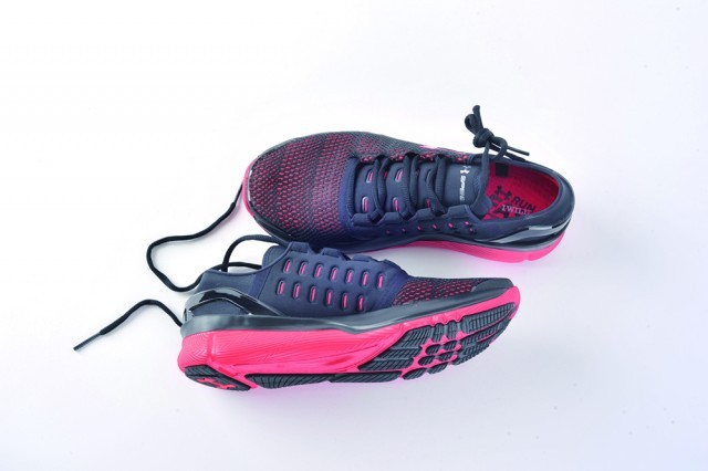 「UA スピードフォーム」の吸いつくような装着感が足の動きをガイド。