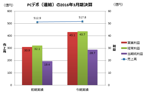 PCデポの2016年3月期連結決算