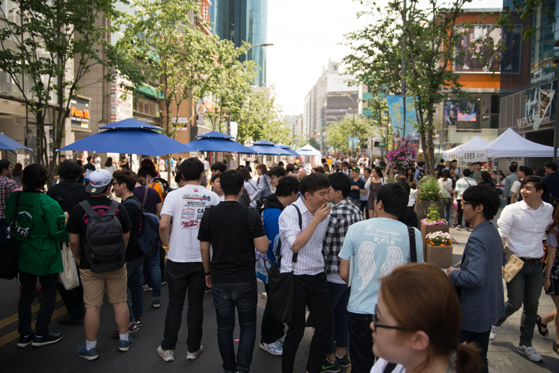 ソウルメトロ2号線の新村駅近く 若者が集まるエリアで開催