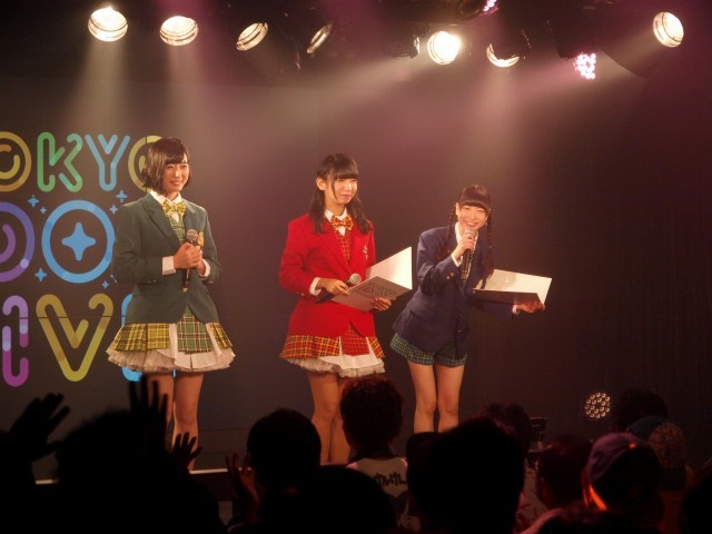 イベントが開催されたAKIBAカルチャーズ劇場は、大入り満員。それぞれのグループはもちろんのこと、このイベントのMCが超豪華でした。でんぱ組.incから古川未鈴さん・夢眠ねむさん・藤咲彩音さんの3人!