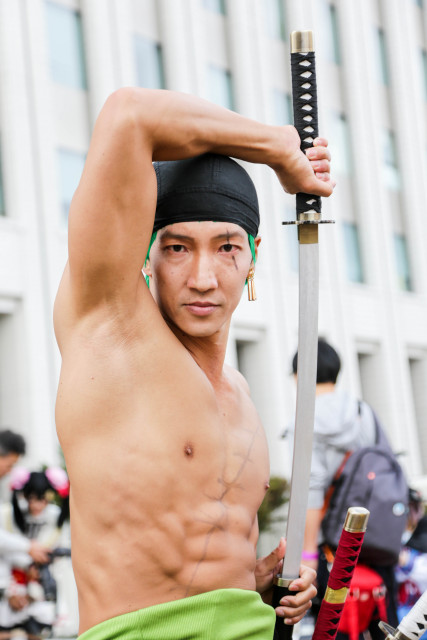 様々な作品の中でも、数多くの男性レイヤーさんが身を包んでいたのが『ONE PIECE』に登場するキャラクターたち。激シブのクロコダイルや、超マッチョなゾロ&ウソップなどなど、レイヤーさんの表情も素晴らしいですね。