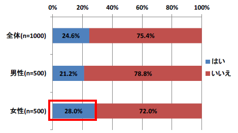 Q.夏に太りやすい理由を知っていますか。「はい」の割合は、女性でも28%にとどまる