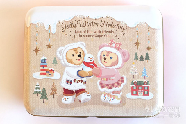 「ダッフィー&フレンズのウィンターホリデー」の容器は、メインアートの中のダッフィーとシェリーメイのイラストです。
