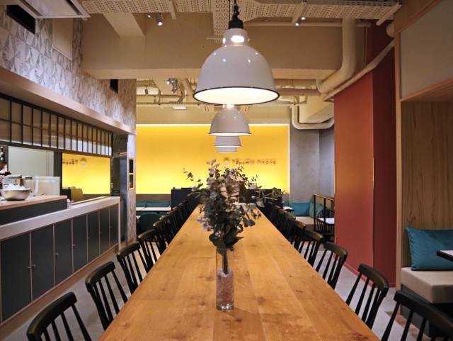 店内は木を基調とした落ち着いたレイアウト。入口には調理工程が間近で見える工房を設けているので、ひとつひとつ料理を作り上げるライブ感も味わえるようになっています。