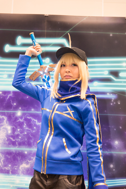 ほかには「Fate」シリーズのキャラクターのコスプレをした人も多く、筆者も大好きなのでたっぷりと撮影させてもらいました。面妖な雰囲気を纏ったキャスター(stay night)のほか、「一体、何セイバーなんだ!?」と話題になったヒロインXの姿も。