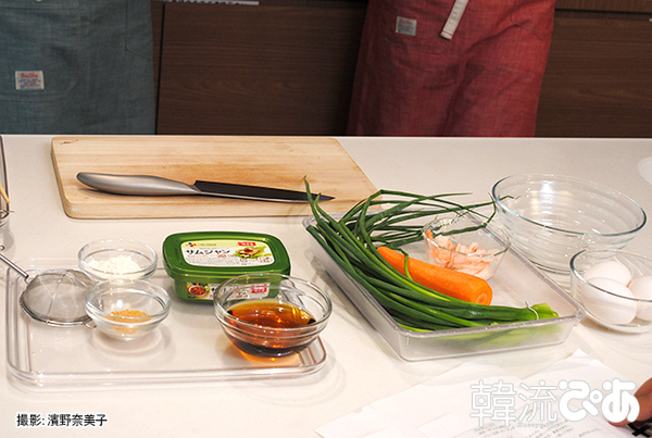 さっそく調理開始! とその前に……ここでヂョンとチヂミの違いについて。ナロさんによれば「ヂョンは標準語。チヂミは方言です」とのこと。なので、日本ではチヂミのほうが有名ですが、今日はヂョンで行きます。