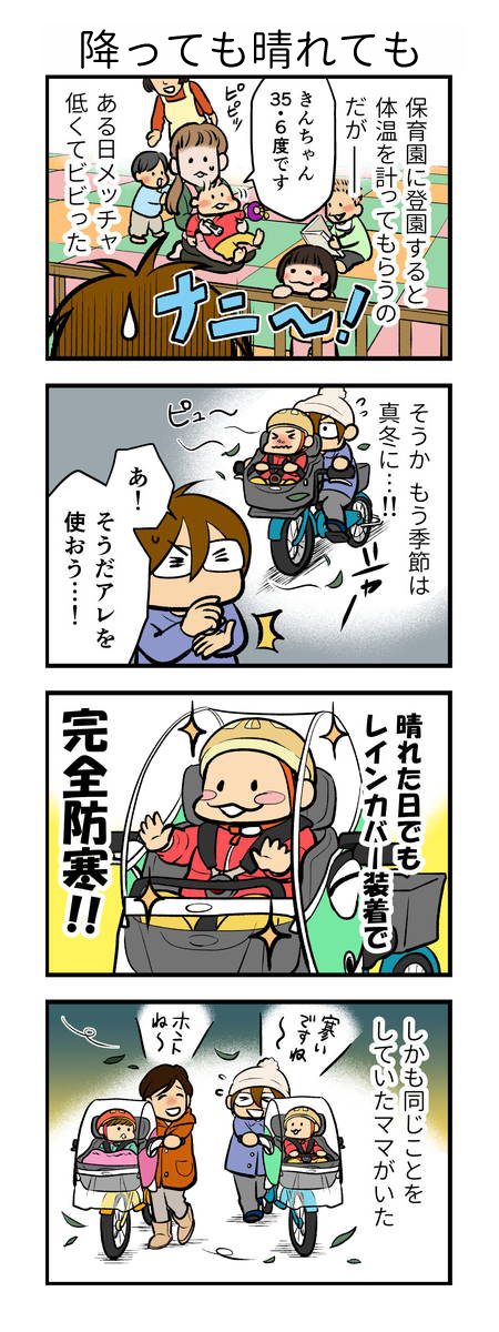 以降は、降っても晴れても子乗せ自転車で穏やかに通園しておりました。