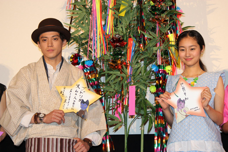 小栗は七夕の願いを聞かれると「ブドリが沢山の人のもとに届きますように(月9もね)」と本作のヒットと共に、自身が出演するTVドラマもちゃっかりアピールする場面も。先月、キャンペーンで訪れた岩手・石巻では“一日賢治課課長”に任命されたといい、記念にプレゼントされた帽子をかぶり、ご満悦の表情だ。「この作品は宮澤賢治の原作と同じで、見る人それぞれにいろんな感じ方をもたらせてくれる作品。ぜひ友人、知人にぜひ宣伝してください」と思いを込めたメッセージも忘れなかった。