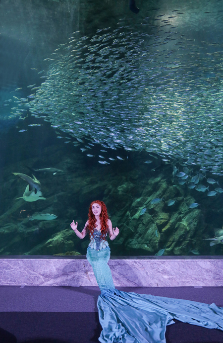 イベントの最後には、2013年の日本初演よりアリエル役を務める谷原志音が、魚たちが悠々と泳ぐ外洋大水槽をバックに劇中歌「パート・オブ・ユア・ワールド」を披露。その歌声で、会場が『リトルマーメイド』の世界へ一瞬にして変化した。