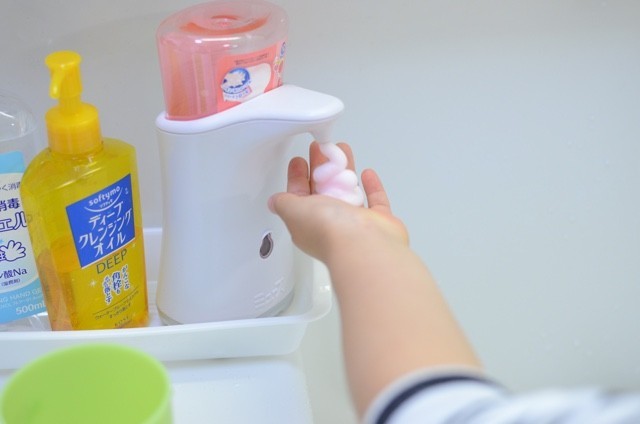 なお、泡ハンドソープには自動式と手動式の2種類があります。どちらでも良いと思いますが、自動で泡が出て来るというのは子どもとしても面白いようなので、こちらを選んで正解でした。