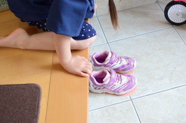 子どもが帰ってくると靴がアクロバティックな姿で脱ぎ捨てられていることが多々あります。きとんと靴はそろえて脱いで欲しいのでお願いしたのですが、やはり幼稚園から帰ってきたら遊ぶことが第一なようですね。