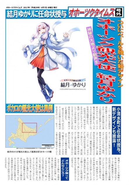 就任にあわせて発行されたオホーツクタイムズ号外には就任の経緯などが紹介されており、「結月ゆかり」を企画したクリエイター集団「VOCALOMAKETS」代表・Bumpyうるしさんの「オホーツク観光の発展と共に、オホーツク内外の架け橋という存在になれると良いなと思っています。」とのコメントなども掲載されています。