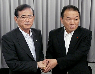 山田昇会長兼CEO(左)とベスト電器の小野浩司社長