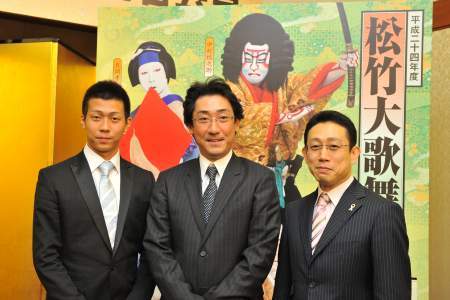 『松竹大歌舞伎』会見より 左から児太郎、橋之助、孝太郎