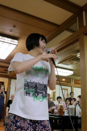 Megu「はい、Meguです!みなさんこんにちネギネギ~!(こんにちネギネギー!ここでMeguさん宴会場を歩き出す。)