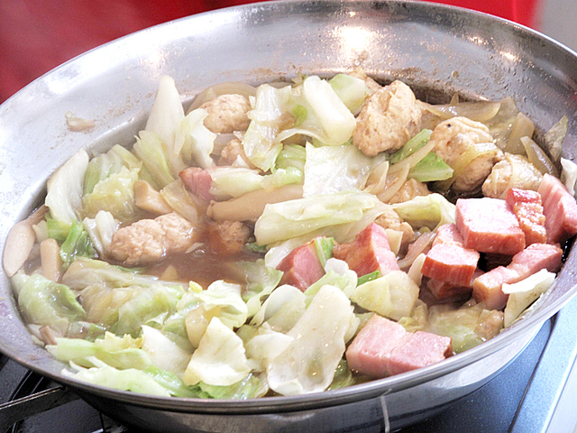 続いて『Bistro Dish オニオングラタン鍋スープ』。洋食の定番メニューが鍋になるという、またしても予想外の展開。具材は肉団子やブロックベーコン、キャベツにじゃがいもなど、小さいお子さんが喜びそうなラインナップ。スープは玉ねぎのコクや甘みとフライドガーリックなどのスパイシーな風味が融合した絶妙な味わいです。付け合せとしてチーズを乗せてトーストしたパンをスープに浸して食べるという斬新なスタイルも美味しかった!