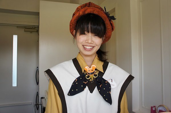 お姉さんの制服のスカーフブローチと笑顔が可愛い!