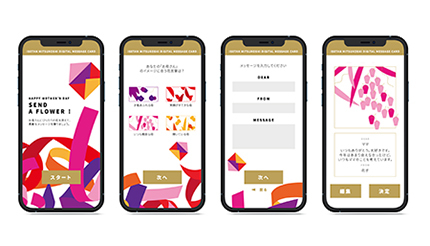 作成したデジタルメッセージカードは、SNSやメールで送信可能で、紙のメッセージカードが付けられないギフトをプレゼントする際や、オンラインでのギフトでも気軽に贈れる。