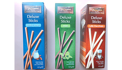 「トリアノン チョコレートスティック」税込365円。今回は3種類の味(左)ミルククリーム(中央)ミント(右)ラテマキアートをチョイス