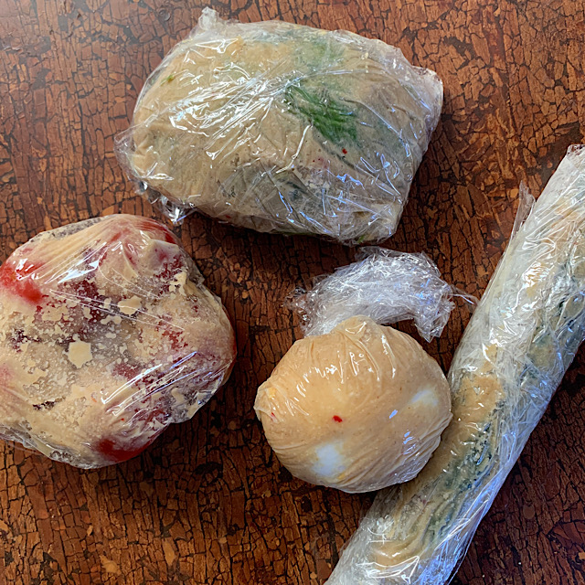 前述のように、ラップの上に水気をとった野菜を置き、ぬか漬けチューブを適量しぼりだすだけでできます。
