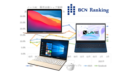 *「BCNランキング」は、全国の主要家電量販店・ネットショップからパソコン本体、デジタル家電などの実売データを毎日収集・集計しているPOSデータベースで、日本の店頭市場の約4割(パソコンの場合)をカバーしています。