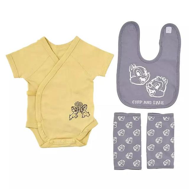 ロンパース、ビブ、ベルトカバーをボックスに詰めたベビーギフトセット(7,700円)、色違いのビブ2枚組セット(5,060円)ともに、赤ちゃんの性別を問わずに使える色味と、チップ&デールの可愛らしいプリントが特徴。