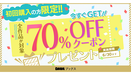 同キャンペーンは、これまでにDMMブックスで有料作品を購入したことがない人を対象に最大100冊まで70%オフになるクーポンを配布するというもの。利用期限は、クーポン取得後7日以内、初回購入が完了するまで。