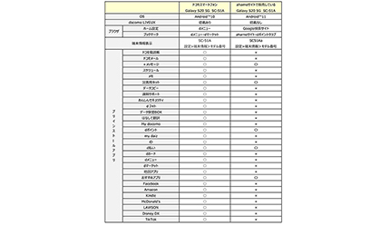 ahamo向けの3機種のうち、5G対応の「Xperia 1 II SO-51A」「Galaxy S20 5G SC-51A」について、ドコモは「ドコモスマートフォンXperia 1 II SO-51A」「ドコモスマートフォンGalaxy S20 5G SC-51A」とそれぞれ一部仕様が異なると案内している。具体的には、「docomo LIVEUX」の搭載はなく、ブックマークに「dメニュー・dマーケット」の代わりに「ahamoサイト・dポイントクラブ」を設定する。