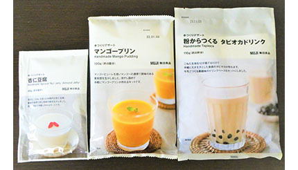 暖かくなって過ごしやすくなってきたが、家事などを頑張っていると汗ばむことも。ひんやりスイーツを食べてひと息つきたくなるところだ。そんなときにおすすめなのが、無印良品の「手作りデザート」シリーズの新作だ。自宅で簡単に作れる甘味の手作りキットで、「マンゴープリン」「杏仁豆腐」「粉からつくるタピオカドリンク」の3種類が販売されている。