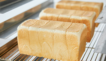 高匠は、独自の製法と品質にこだわる食パン専門店。職人が一つひとつ丁寧に仕上げている。小麦粉を熱湯でこねて、低温で熟成させる「湯種製法」によって、ふんわりもちもちで、ほんのり甘くて耳までおいしく味わえる。