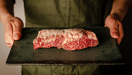極上ハラミは、シンプルなグリル焼きを用意しており、200gのかたまりを、あえてレア気味に焼くことで、口いっぱいに芳醇な脂が広がり、上質な和牛の香りに身も心も満たされる。食感も、しっかりとした歯ごたえがありながら、噛めば口の中ですっと溶けていくような感覚が楽しめる。