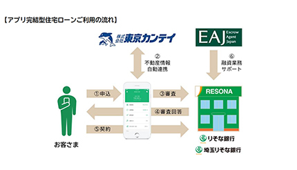 りそなグループのりそな銀行、埼玉りそな銀行は、エスクロー・エージェント・ジャパン(EAJ)、東京カンテイと連携し、スマートフォンアプリだけで住宅ローンの借り入れが可能な「アプリ完結型住宅ローン」の取り扱いを4月19日に開始した。