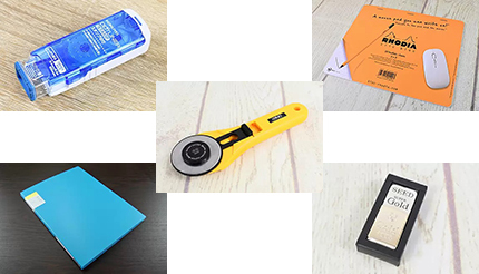 カッターはカッターでも見た目がまるで“ピザカッター”なのは、オルファの「ロータリーカッターLL型」。過去に、グッドデザイン・ロングライフデザイン賞に輝いたこともある。カッターは少し使いにくいと感じていたが、そんな先入観を見事に覆してくれた。