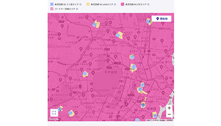 広域だとよく分からないが、マップを拡大表示して確認すると、既に5Gエリア(主に5G sub6エリア)は三大都市圏をはじめ、全国各地に点在していると分かる。