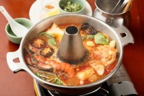 コースは、全15品。長野県産糖度20度以上の朝採れトウモロコシなど旬の食材を用いた約10種類のナムル盛合せ、約5種類のキムチ、牛を長時間煮丁寧に込んだスープは、白と赤2種類から選べます(写真は赤のコムタン)。韓国風珍味や前菜2種類、特選黒毛和牛の焼肉6種類と新潟県産生椎茸や長野県産アスパラガスなど旬の野菜が無煙ロースターならではの素材を活かした焼き上がりで楽しめる上に、最後の〆の逸品として宮廷薬膳料理の参鶏湯(サムゲタン)が提供されます。