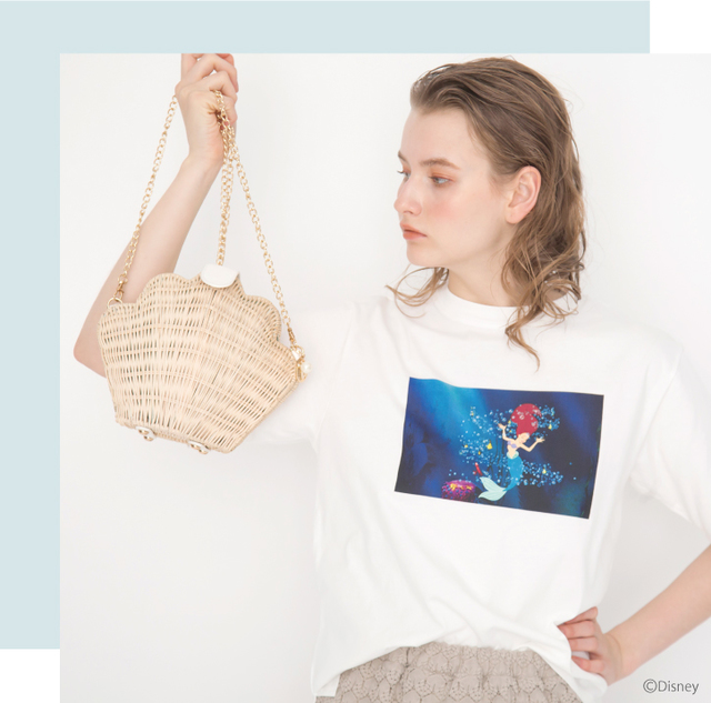 アリエルが気泡の中で歌うシーンと、アリエル姉妹が集合したシーンがデザインされた「フォトTシャツ」。
