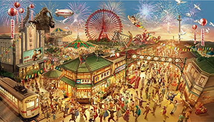 入場ゲートをくぐると活気・元気・熱気にあふれる1960年代の懐かしい景色が広がる。30もの店舗がずらりと並ぶ「夕日の丘商店街」で、360度どこを見渡してもいたるところで巻き起こる、予想もつかない圧巻のライブパフォーマンスが注目のポイント。ゲスト自身も巻き込んだイベントで、没入感を高める。独自の園内通過を導入し、商店街の住人とのインタラクションを楽しむ買い物体験までアトラクション化する。