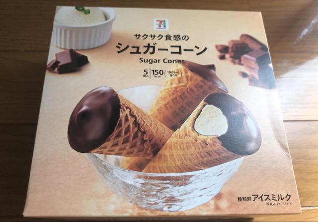 5個入りの箱アイスで、カリカリのシュガーコーンと、濃厚なバニラアイス、くちどけのいいチョコレートがミックスされたアイスが入っています。