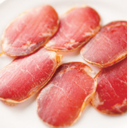 旨みが凝縮された「イベリコベジョータのロース肉の腸詰め」1480円 拡大画像表示