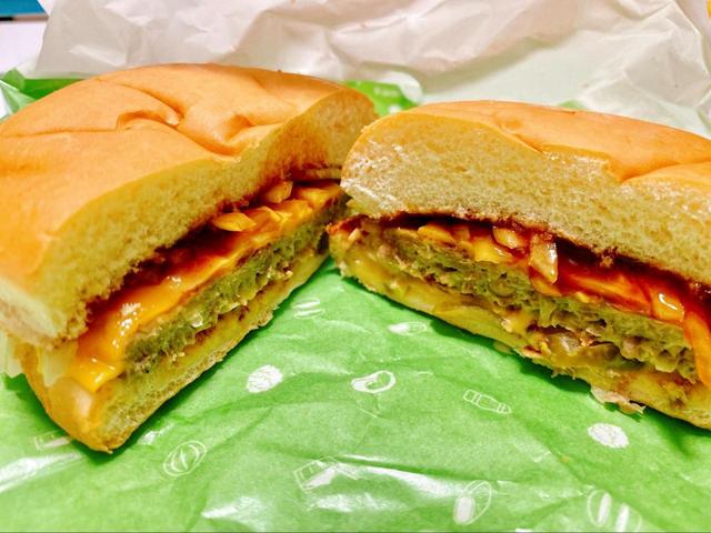 ロッテリアのソイBBQチーズバーガーは、一口食べると本当に大豆? と思うほど、牛肉の再現性が高いパティが特徴的でした。